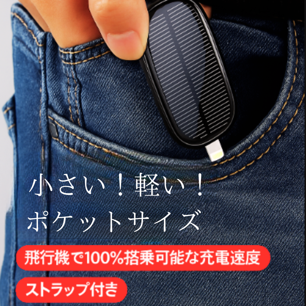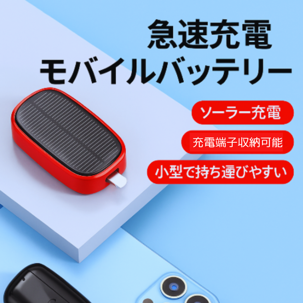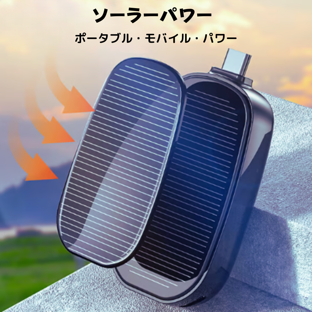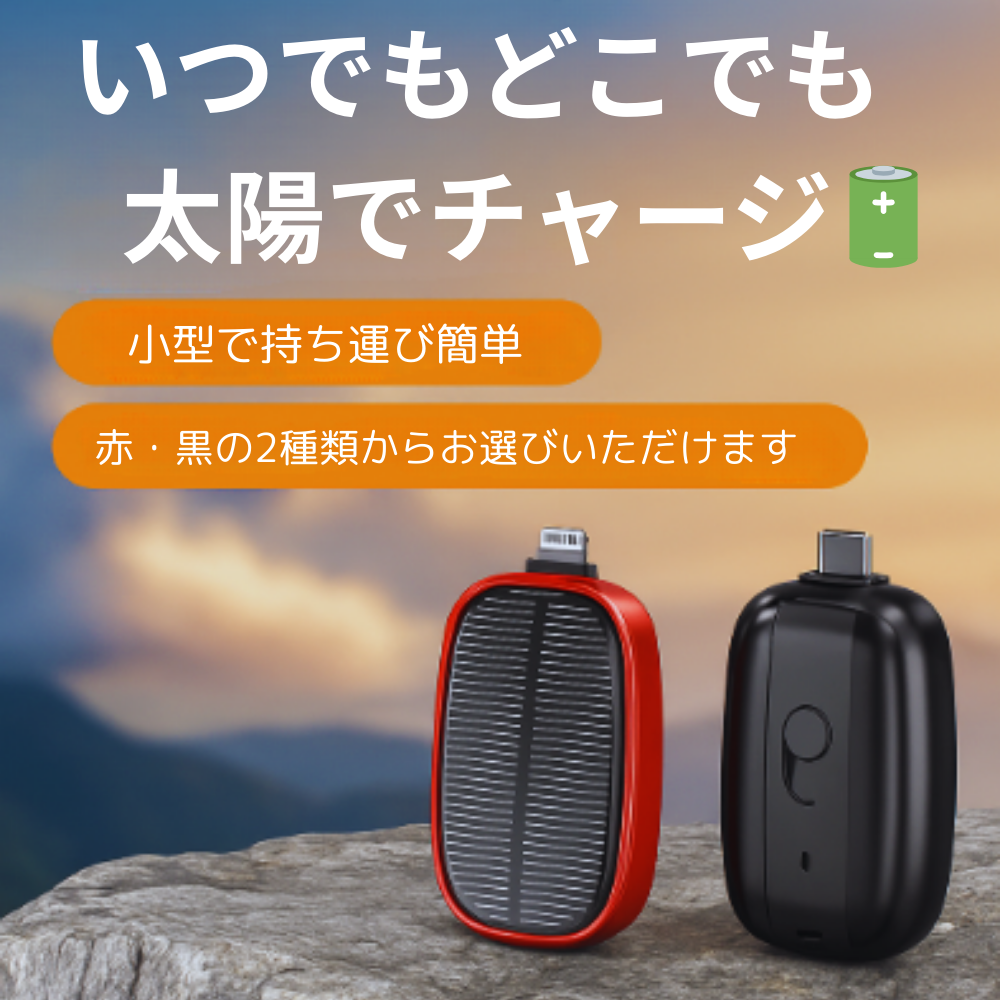 ・ 太陽光で充電できる、超コンパクトモバイルバッテリー。